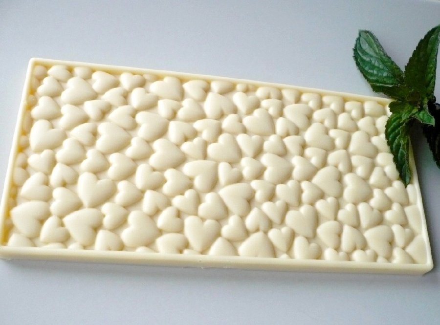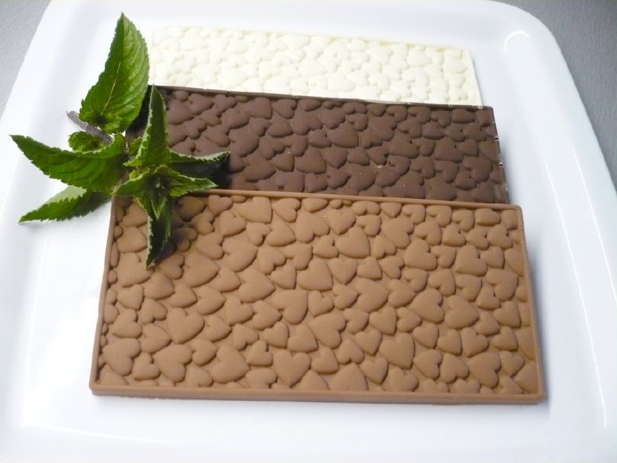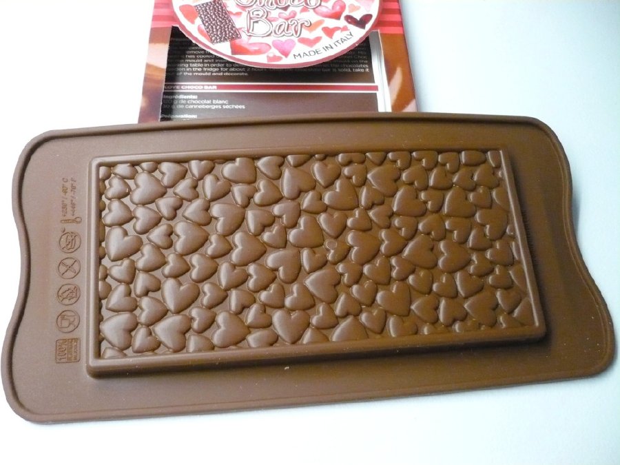 Mit dieser Form stellen Sie eine wunderschön dekorierte, selbstgemachte Schokoladentafel mit kleinen Herzen her, die sich perfekt als Geschenk zum Valentinstag eignet. Gießen Sie Ihre Lieblingsschokolade in die Tafel und lassen Sie sie fest werden. Die antihaftbeschichtete Form wird immer eine perfekte Tafel ergeben. Die Schokoladenform misst 15,5 x 7,6 x 0,9 cm. Volumen: 86 ml.