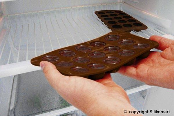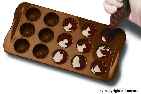 Mit dieser Form können Sie lustige Figuren herstellen, die Modebegeisterte begeistern werden. Die Form hat ein Volumen von 96 ml und die Maße der einzelnen Bonbons betragen 4x3x1,2 cm. Sie können die Figuren als Dessert zum Kaffee servieren oder einen Kuchen damit verzieren. Füllen Sie die Form mit geschmolzener Schokolade, wischen Sie den Überschuss mit einem Spatel ab und klopfen Sie die Form auf die Arbeitsfläche, um Blasen in der Schokolade zu vermeiden. Die Pralinen in den Kühlschrank stellen (die Form hält Temperaturen bis zu -60°C aus). Dank der Antihaftwirkung und der Elastizität des Silikons lassen sich die Pralinen immer leicht ablösen.
