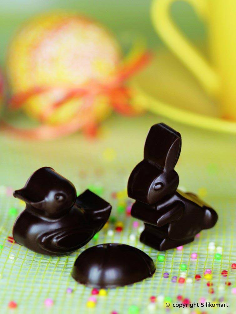 In der Form finden Sie drei niedliche Ostermotive: Hasen, Enten und Mini-Ostereier. Schmelzen Sie einfach Ihre Lieblingsschokolade und gießen Sie sie in die Form.