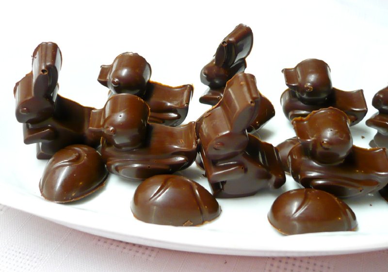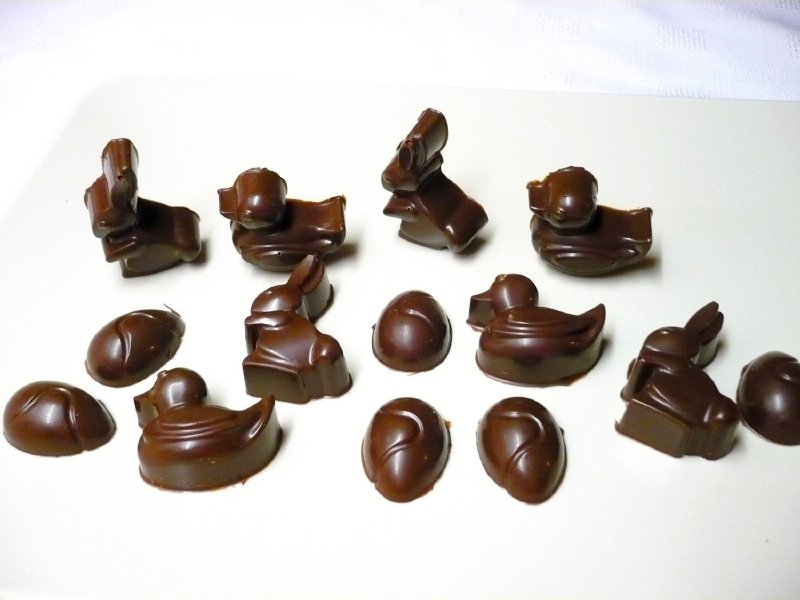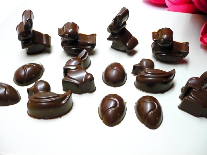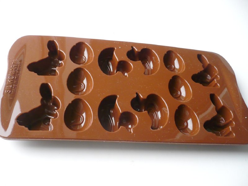Die Maße der Schokoladenfiguren sind 3x4,3cm, Höhe 1,6cm. Wir hatten einen Foodblogger-Test für euch: Die Silikon-Schokoladenformen von Silikomart haben mir sehr gut gefallen, ich bin wirklich sehr zufrieden mit den Produkten dieser Marke. Sie sind in verschiedenen Designs erhältlich und passen zu unterschiedlichen Anlässen. Da ist wirklich für jeden etwas dabei. Diese Form wird vor allem zu Ostern verwendet, um kleine Pralinen herzustellen, die nicht nur Kindern gefallen werden. Es können alle Schokoladensorten verwendet werden, Vollmilch-, Zartbitter- und weiße Schokolade. Für diese Form benötige ich 120 g Schokolade, die ich in einem Topf namens Wasserbad schmelze, der ebenfalls in diesem E-Shop erhältlich ist. Es ist absolut perfekt für die Herstellung von Schokolade, denn sonst schmilzt die Schokolade in einem normalen Wasserbad. Ich empfehle, sich das Video mit den Ratschlägen von Herrn Radek Šubrt anzusehen, in dem die Zubereitung sehr schön beschrieben ist, und ich gehe genauso vor. https://www.youtube.com/watch?v=5bvPYK9eZHs Ich gieße die geschmolzene Schokolade in die Form, glätte die Oberfläche mit einem Spatel oder einem ähnlichen Werkzeug und schlage die Form mehrmals auf die Tischplatte, damit keine Luftblasen in den Pralinen sind. Ich streiche sie noch einmal glatt, sammle überschüssige Schokolade aus der Form und lasse sie ein paar Stunden im Kühlschrank fest werden. Dann löse ich die Pralinen aus der Form, das geht sehr gut. Ich kann die Form nur empfehlen, die Pralinen daraus werden bestimmt eine Dekoration für den Ostertisch sein. M.F.