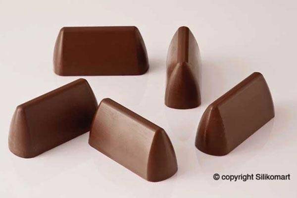 Silikonform für Schokolade von Silikomart. Dachform 24 x 14 g. Volumen 336 ml.