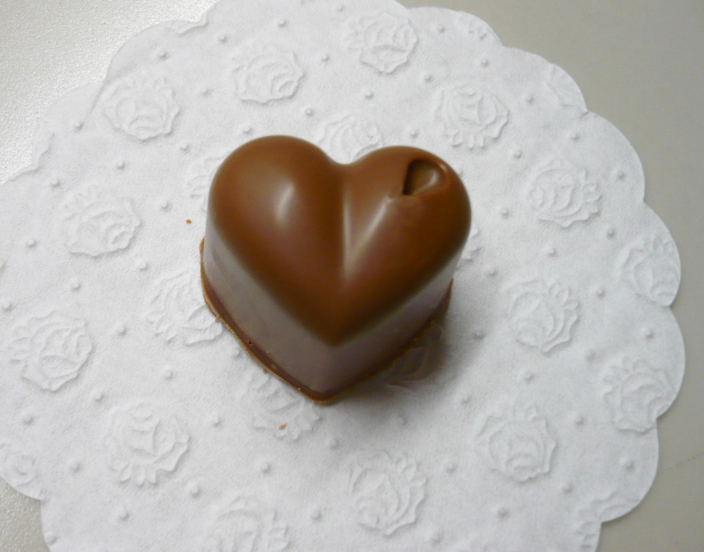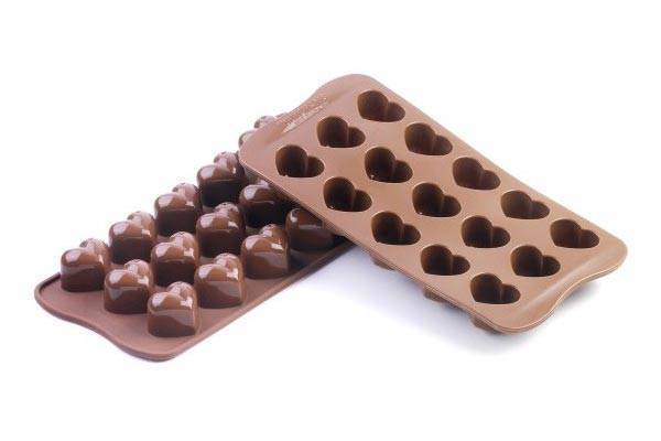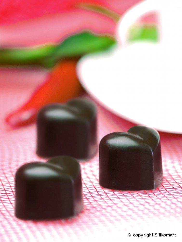 Oder Sie können Schokolade in die Form gießen und schöne Bonbons herstellen. Wir haben sie von einer Foodbloggerin für Sie testen lassen: Ich mag die Silikon-Schokoladenformen von Silikomart sehr gerne, ich bin sehr zufrieden mit den Produkten dieser Marke. Sie sind in verschiedenen Designs erhältlich und es ist wirklich für jeden etwas dabei. Diese Herzform kann man das ganze Jahr über und zu allen Anlässen verwenden. Aber selbstgemachte Pralinen oder Schokolade in dieser Form werden am Valentinstag am meisten gefragt sein. Wenn die Form nur für Schokolade verwendet wird, werden 180 - 190 g benötigt. Es können alle Sorten verwendet werden, Vollmilch-, Zartbitter- und weiße Schokolade. Wenn man Pralinen machen will, reichen 120 g Schokolade und eine etwas festere Füllung. Ein einfaches Beispiel: 50 g Kokosnuss gemischt mit 80 g gesüßter Kondensmilch. Es gibt viele Möglichkeiten und der Kreativität sind keine Grenzen gesetzt. Bei der Herstellung von Pralinen schmelze ich die Schokolade in einem Topf im Wasserbad, streiche mit einem kleinen Pinsel eine dünne Schicht in die Vertiefungen der Form und lasse die Schokolade in der Kälte fest werden. Dann wiederhole ich den Vorgang noch einmal und nachdem sie wieder fest geworden ist, fülle ich ein kleines Stück unterhalb des Randes und überziehe es mit Schokolade. Ich streiche die Oberfläche glatt und wische die überschüssige Schokolade außerhalb der Form ab. Einige Stunden, am besten über Nacht, in den Kühlschrank stellen und die Pralinen aus der Form lösen. Das funktioniert perfekt. Wenn man die Schokolade nach dem Schmelzen und Einfüllen in die Form nur gießen möchte, empfehle ich, die Form mehrmals aus der Höhe auf eine Tischplatte zu schlagen, um Luftblasen zu vermeiden. Wenn Sie einen hölzernen Rührstab verwenden, um die leicht gehärtete Schokolade in der Form zu versteifen, dann wird das Herz für heiße Schokolade verwendet, wobei die Schokolade in die heiße Milch gegeben und zum Schmelzen gerührt wird. Ein wenig Zimt kann der Schokolade während der Herstellung zugegeben werden.