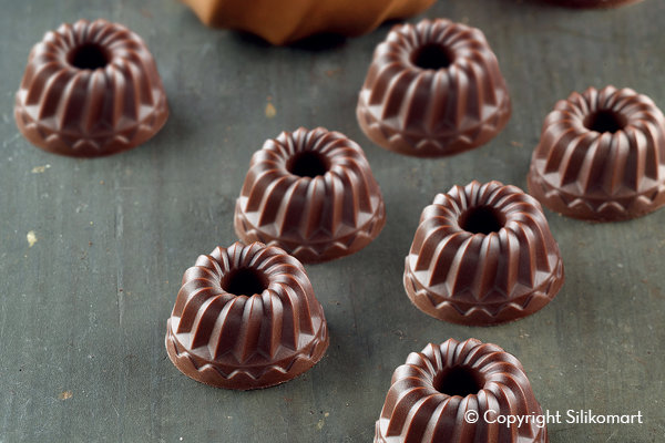 Mit dieser Silikonschokoladenform können Sie 24 Mini-Bundt Cakes mit einem Volumen von 10ml herstellen.