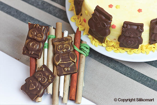 Originelle Form für die Zubereitung von sechzehn Pralinen. Neben der Form finden Sie auch ein Rezeptbuch zur Inspiration. Dank ihrer Form können die Eulen auch als Kuchendekoration verwendet werden. Die Form kann nach dem Gebrauch in der Spülmaschine gereinigt werden. Die Abmessungen einer Eule betragen 6,2 x 4 cm.