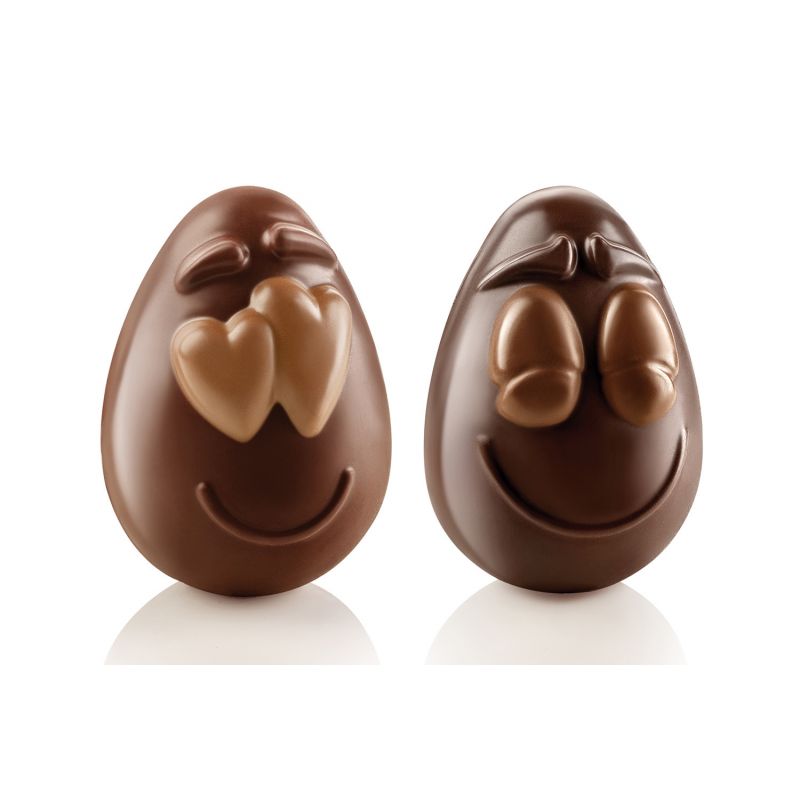 Hochwertige 3D-Formen von der italienischen Marke Silikomart. Überraschen Sie Ihre Familie, Freunde und Kunden mit einer schönen Schokoladendekoration in Form von lächelnden Eiern. Ideal für Ostern. Die Desserts kleben nicht an der Oberfläche, so dass sie leicht entfernt werden können, ohne dass man sich Sorgen um eine Beschädigung machen muss. Leicht zu reinigen und zu verwenden.