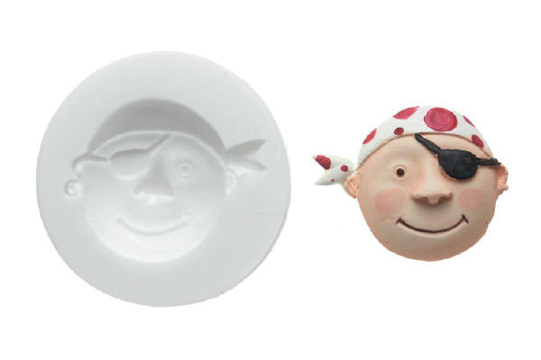Die Silikon-Piratenform erleichtert die Herstellung dieses beliebten Dekorationselements. Abmessungen 22 x 22 mm.