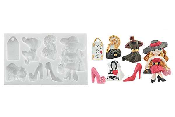 Silikonová formička s motivy ze světa módy. Vytvářejte jedinečné jedlé i nejedlé dekorace. vyrobeny z vysoce kvalitního potravinářského silikonu a zvládnou teploty od -40C; +180C bez ztráty flexibility. Lze je použít s cukrovou pastou, fondánem, modelovací pastou, květinovou pastou, cukrovou hlínou, marcipánem, čokoládou, tvrdým bonbónem, cukrovou hlínou, gumovou pastou, královskou polevou, želatinou a dalšími. Mohou být také použity pro nepotravinářské účely, včetně vosku, jílu, polymerové hmoty, mýdla, studeného porcelánu a dalších. Vezměte prosím na vědomí, že se nedoporučuje používat stejnou formu pro jedlé i nepoživatelné suroviny.