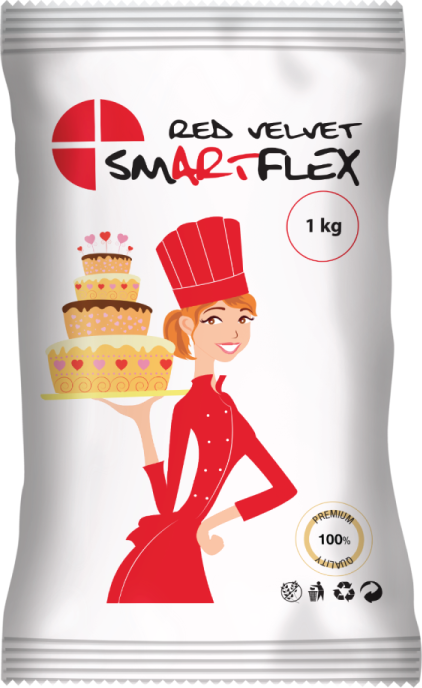 Eine rote, besonders flexible Paste mit ausgezeichneten Eigenschaften, besonders geeignet für das Überziehen von Torten und das Modellieren von Figürchen.