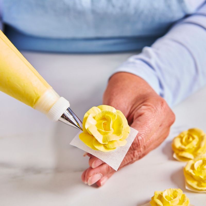 150 g Mix mit 100 ml Milch und 100 ml Wasser mischen und ca. 3 Minuten bei hoher Drehzahl schlagen. Die Creme kann sofort zum Füllen oder Dekorieren verwendet werden. Bei Lagerung im Kühlschrank 5–6 Tage vor dem nächsten Gebrauch umrühren. Für verschiedene Zwecke kann entweder eine Kombination aus Milch + Wasser verwendet werden oder nur eine Flüssigkeit (200 ml). Eine Portion reicht aus, um zwei Tortenlagen mit einem Durchmesser von 25 cm zu füllen oder Dekorationen für 24–30 Cupcakes herzustellen.