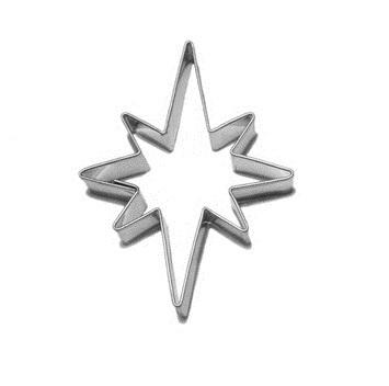 Die Ausstechform ist 17 × 24 mm groß und eignet sich daher zum Ausstechen der Zentren größerer Formen für Klebebonbons. Dank der scharfen Kante des Ausstechers können Sie immer einen perfekten achtzackigen Stern ausstechen. Der Ausstecher ist aus Weißblech gefertigt. Blechhöhe 16 mm.