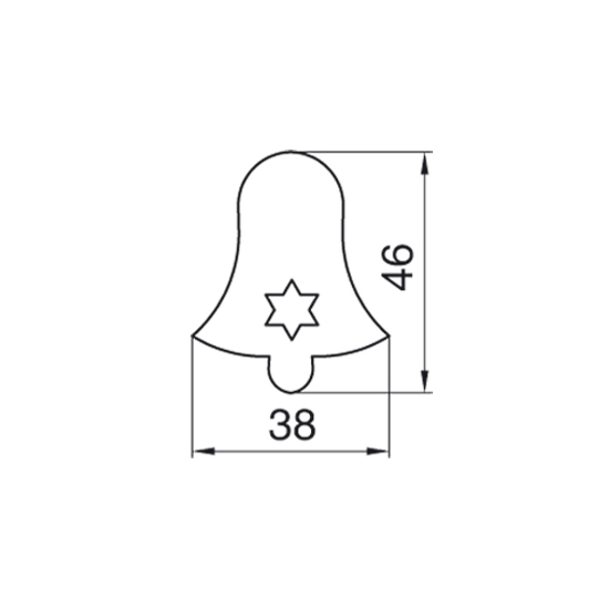 Relativ kleines, aber sehr interessantes Motiv, das sich leicht mit einem Weißblechwerkzeug ausschneiden lässt. Im mittleren Teil der Glocke ist ein Stern angebracht, so dass im Endprodukt ein Loch in dieser Form entsteht. Mit einer Höhe von 46 mm und einer Breite von 38 mm ist die Zierglocke sehr leicht auszuschneiden, das Ergebnis ist sehr dekorativ und eignet sich zum Verzieren auf verschiedene Weise. Die gebräuchlichsten sind mit Zucker aufgeschlagenes Eiweiß oder mit Lebensmittelfarben eingefärbtes Eiweiß, aber auch geschmolzene weiße und klassische Schokolade und verschiedene Toppings sehen sehr spektakulär aus.