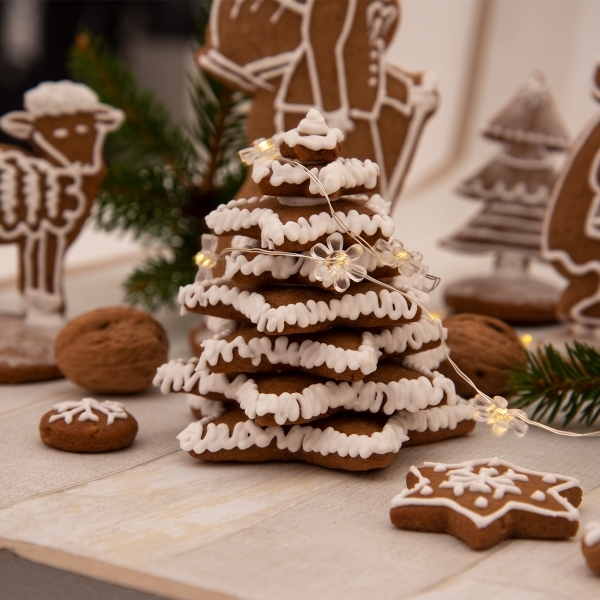 Sie können die STAR-Ausstecher einzeln verwenden, einen kleineren Ausstecher in einer größeren Form ausstechen, um eine Mitte zu schaffen, die typisch für geklebte Linzer Süßigkeiten ist, oder Lebkuchenteig verwenden, um einen Weihnachtsbaum nicht nur für Bethlehem zu schaffen.
