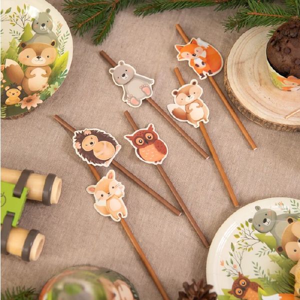 Strohhalme Waldtiere. Länge 19,5 cm, 6 Stück.