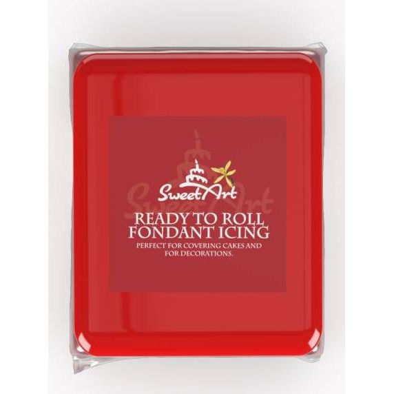 Rote Zuckerpaste mit Vanillegeschmack zum Überziehen von Torten und zur Herstellung von Zuckerfiguren.
