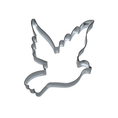 Taubenförmiger Ausstecher aus Weißblech mit den Maßen 9,2 x 6,3 Zentimeter