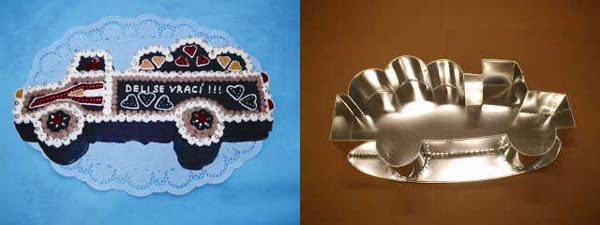 Die witzige Weißblechform in Form einer LKW-Silhouette inklusive Ladung ist für jeden Backofen geeignet. Sie hält Temperaturen von bis zu 250°C stand. Dank des flachen, ebenen Bodens der Form lässt sich der gebackene Kuchen leicht mit Sahne dekorieren, aber auch mit Fondant überziehen.