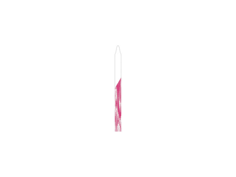 Weiße Tortenkerzen mit geglühtem lila Dekor. Der Durchmesser der Kerzen ist 8 mm und die Länge beträgt 9 cm.