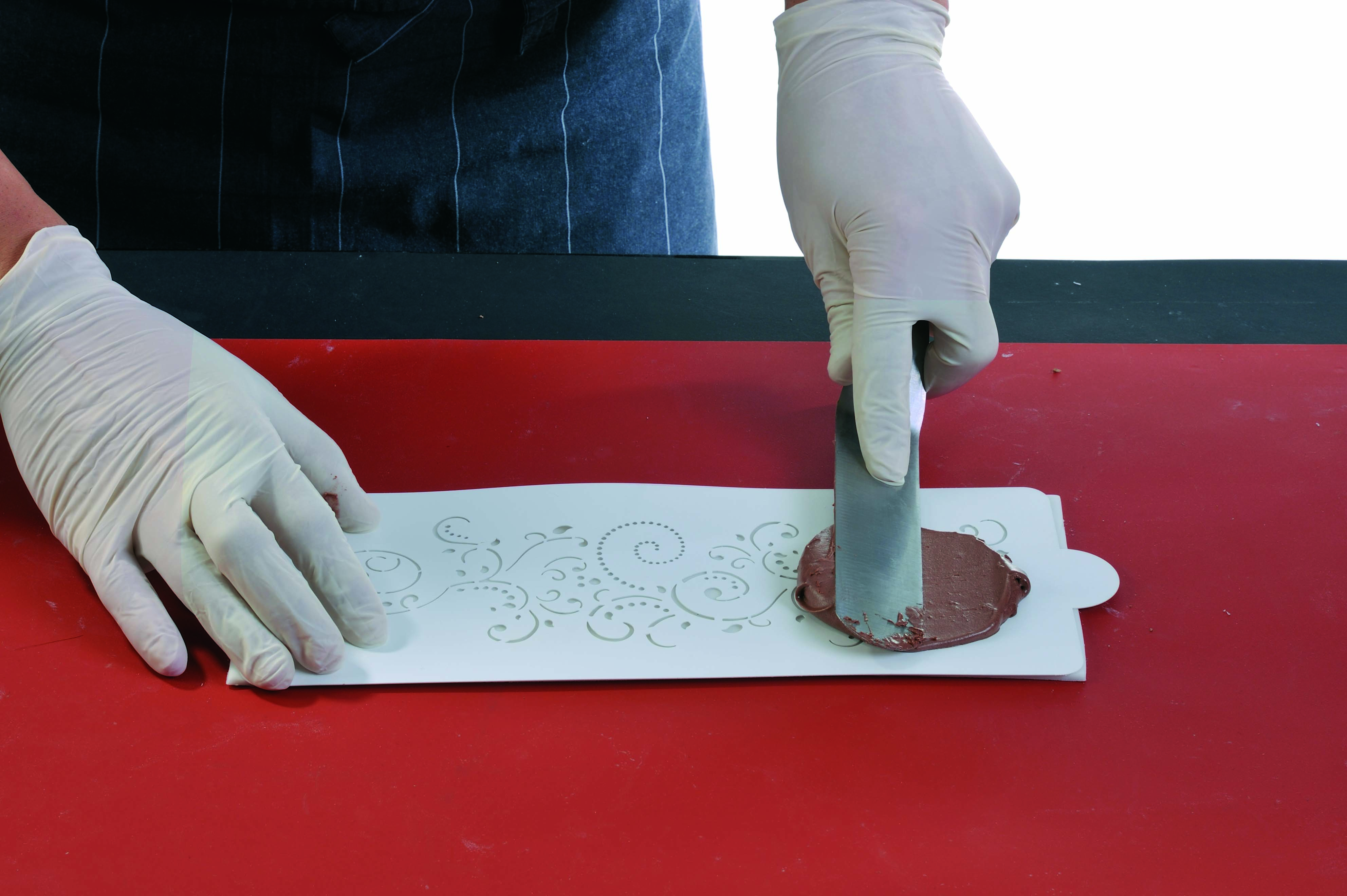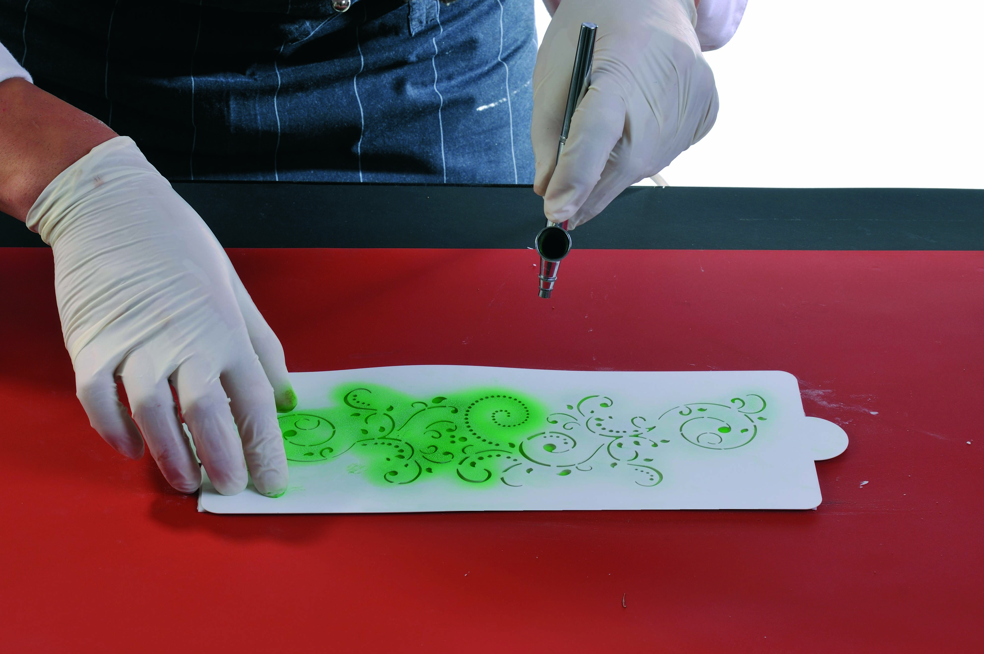 Wenn Sie eine professionelle Torte kreieren möchten, sich aber nicht sicher sind, ob Sie mit komplexeren Formen umgehen können, ist eine professionelle Tortendekorationsschablone die beste Wahl. Halten Sie die Schablone einfach auf die Oberfläche der Torte oder der Süßigkeit und malen Sie vorsichtig mit einer Airbrush darüber. Wenn Sie die Schablone abnehmen, haben Sie ein professionell aussehendes Design auf Ihrer Torte. Schablone - die Schablone ist vielseitig einsetzbar und mit ihrer Hilfe erzielen Sie die professionellsten Ergebnisse.