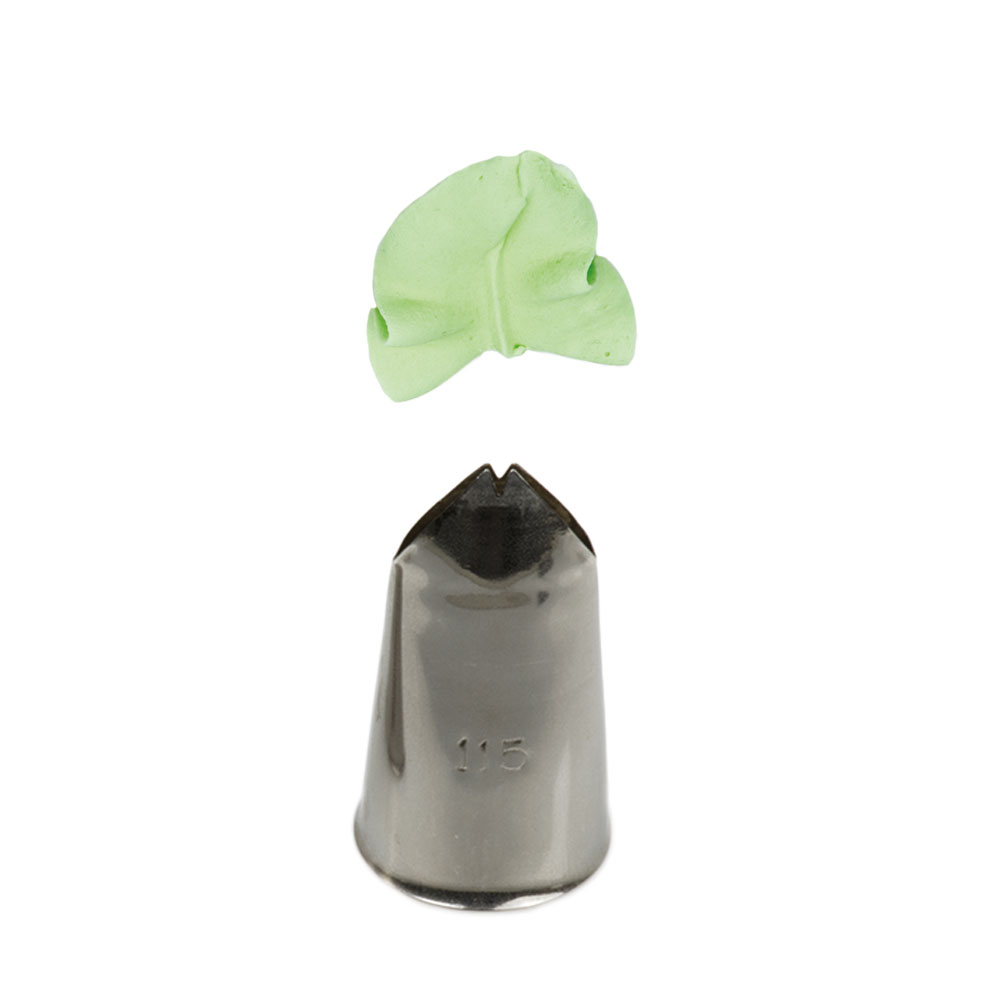 Die Metall-Dekorierspitze 115 für Blätter garantiert Ihnen eine präzise und einzigartige Dekoration. Die Spitze kann wiederholt mit dem Dekorationsbeutel verwendet werden. Sie ist aus rostfreiem Stahl gefertigt, es bleiben keine Fettflecken auf der Oberfläche. Nicht spülmaschinenfest.
