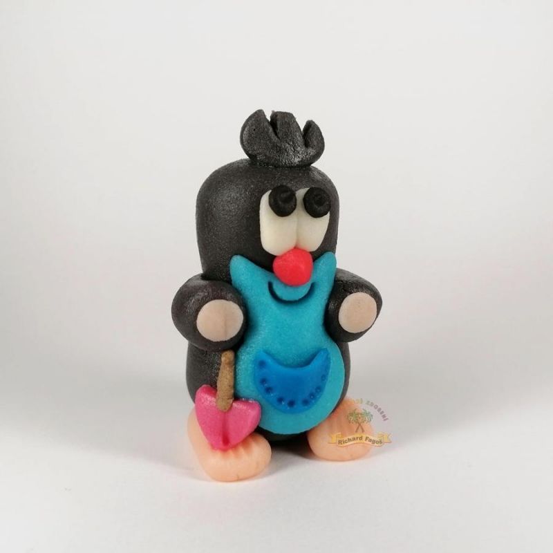 Handgefertigte 3D-Figur in Form eines beliebten Maulwurfs. Zur Herstellung wurde modellierende Kokosmasse mit Geschmack und Aroma süßer Mandeln verwendet. Damit lassen sich Torten, Rollen, Gebäckstücke und weitere Leckereien verzieren.