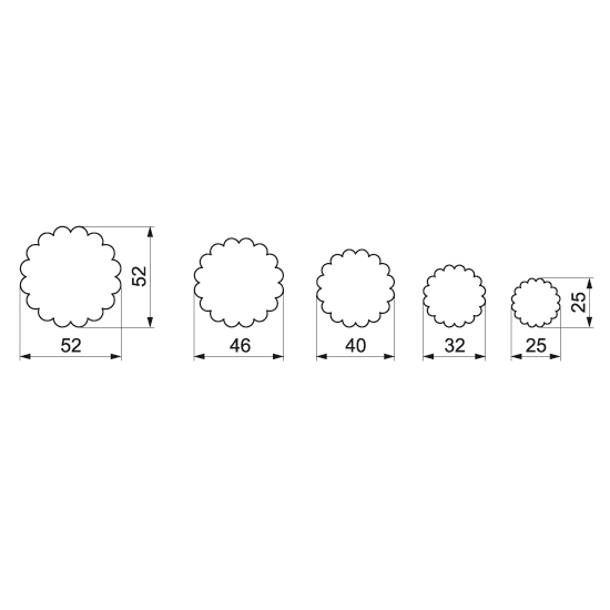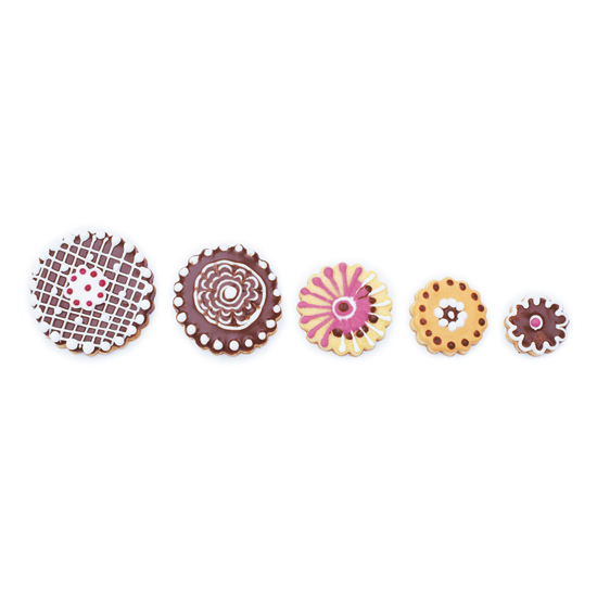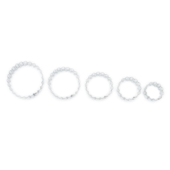 Die Ausstechformen mit einem Durchmesser von 5,2 - 4,5 - 4 - 3,2 und 2,5 cm haben die Form eines gezackten Kreises und können für Lebkuchen, Linzer und andere Teigsorten verwendet werden. Das hochwertige, verzinnte und gesundheitlich unbedenkliche Blech, aus dem sie hergestellt sind, ist sehr leicht zu reinigen. Mit Hilfe von Dekorationssets, die Sie ebenfalls in unserem Angebot finden, können Sie die gebackenen Runden nach Ihren Vorstellungen bekleben oder verzieren. Wenn Sie ein Backblech brauchen, das nicht anbrennt, haben wir das natürlich auch.
