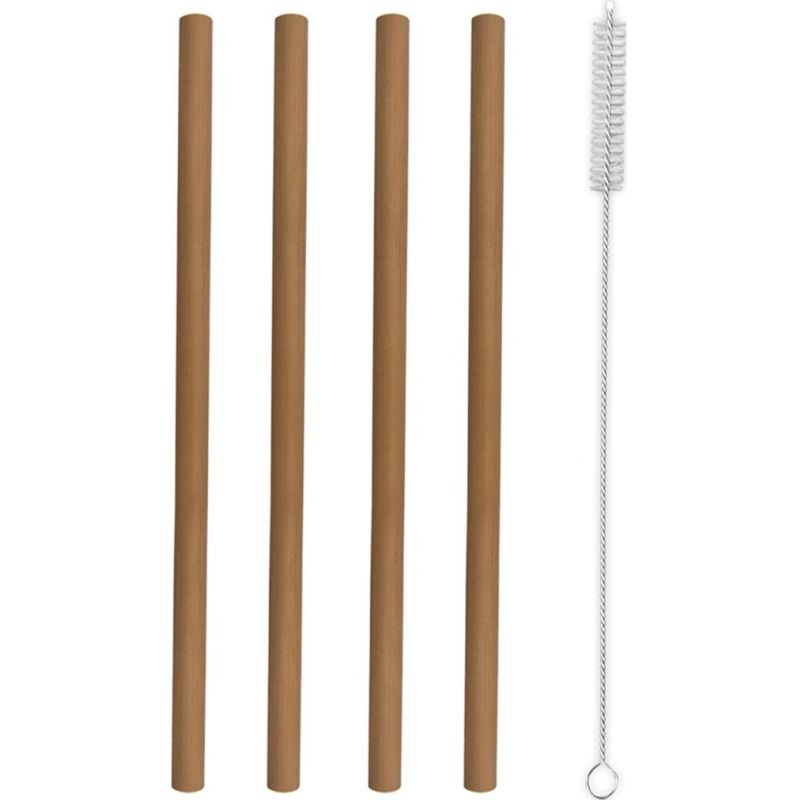 Der wiederverwendbare Trinkhalm aus Bambus bewahrt die Natur vor der Verschwendung von Einweg-Plastikhalmen. Es sollte jedermanns Ziel sein, zur Abfallvermeidung, zum Umweltschutz und zu einem allgemein nachhaltigen Lebensstil beizutragen. Ersetzen wir also Einwegprodukte durch wiederverwendbare Produkte. Das Set enthält 4 gerade Strohhalme und eine Reinigungsbürste. Nach dem Waschen mit Wasser lassen Sie die Strohhalme gründlich trocknen. Sie geben keine schädlichen Stoffe wie Phthalate oder BPA an Ihre Getränke ab. Material: Bambus, Metall, Kunststoff. Abmessungen: L. 20 cm, T. ca. 1 cm.