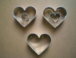 Die Herzen sind aus Weißblech gefertigt. Die Aussparungen sind glatt. Im Set sind drei Stanzen enthalten: ein Herz, ein Herz mit runder Mitte und ein Herz mit Herzmitte. Das Set ist für die Herstellung von Klebebonbons geeignet.