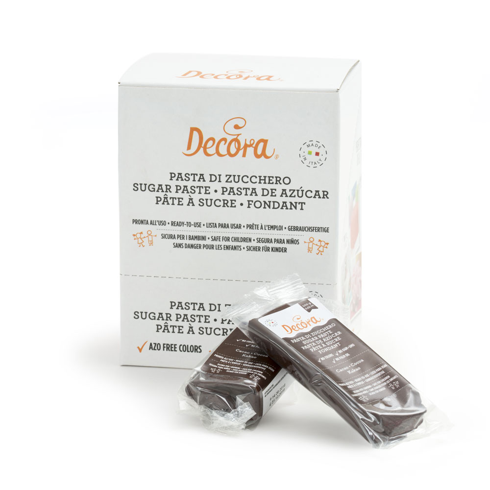 Kakaomodellierzuckerpaste in Vakuumbeuteln verpackt. Die Zuckerpaste hat dank der Kakaobutter eine perfekte Formbarkeit und Elastizität, sie ist ideal zum Überziehen von Torten, zum Herstellen von Blumen und 3D-Objekten, man kann sie von Hand oder mit Teig bis zu 1 mm dick bemalen, angenehm im Geschmack dank des leichten Mandelduftes. Die farbige Zuckerpaste bietet mehrere Dekorationsmöglichkeiten mit beträchtlichen Einsparungen, was sie auch zur idealen Paste für die Herstellung von Objekten und Dekorationen wie Blumen und Blättern macht. Sie sorgt dafür, dass Objekte und Dekorationen perfekt bleiben, ohne dass die Gefahr besteht, dass sie zusammenfallen oder brechen.
