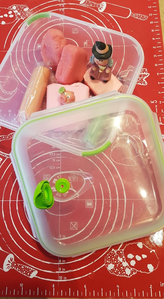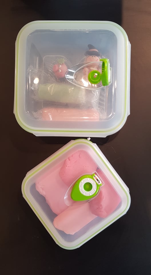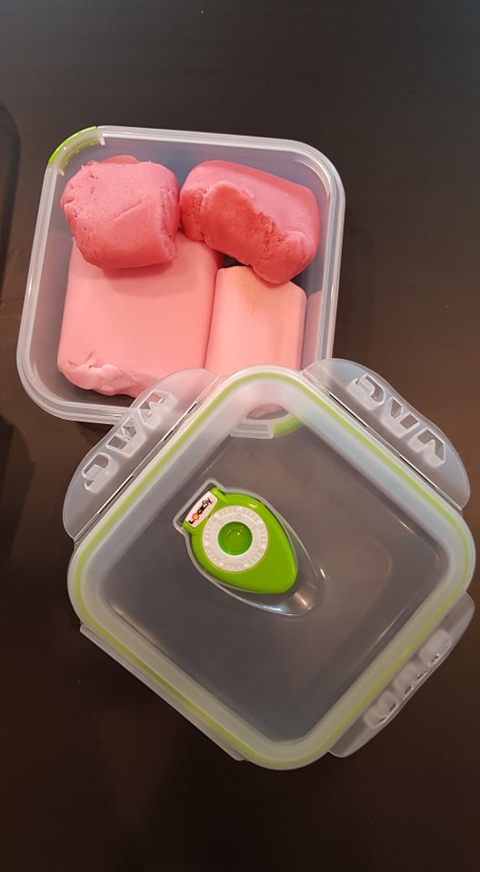 Zuckerpaste trocknet an der Luft und kann nach dem Verarbeiten an der Oberfläche reißen. Wenn Sie also nicht sofort nach dem Öffnen damit arbeiten, ist es eine gute Idee, sie erst in einen Beutel und dann in die Box zu geben. Machen Sie dasselbe mit der Masse, wenn Sie die unverpackte Masse für künftige Dekorationen aufbewahren möchten. Gut verpackt und gelagert, hält sich Fondant mehrere Wochen, manchmal sogar Monate. Gerade bei der Lagerung von Zuckermassen und ihren Produkten werden Sie die Locksy-Box und ihre Funktion - den Luftabzug - zu schätzen wissen. Die Box ist patentiert, man muss nur den Deckel an den vier Stellen der Box einklicken und dann den Deckel drücken, um ein Vakuum zu erzeugen, so dass keine Luft in der Box bleibt. Auf dem Deckel der Box befindet sich ein grünes "Schnabel"-Ventil, unter dem sich ein Gummiband befindet, es dient als Dichtung. Das Ventil muss immer auf der Schachtel liegen. Wenn du die Schachtel öffnen willst, schiebst du das Ventil nach oben, so dass Luft in die Schachtel gelangt und sie geöffnet werden kann, wenn die Druckknöpfe geöffnet werden. Wenn du die Schachtel richtig bedienst, hörst du ein pfeifendes Geräusch, wenn die Luft herausgesaugt wird und sich das Ventil öffnet. Das Ventil hat ein Rad, auf dem man das Datum einstellen kann, damit man weiß, wann man den Inhalt in die Box gelegt hat. Die Box kann in der Spülmaschine, in der Mikrowelle und im Gefrierschrank aufbewahrt werden. Beim Waschen ist es wichtig, den Dichtungsgummi im Ventil und um den Deckel herum von Zeit zu Zeit zu entfernen, da Schmutz darunter gelangen kann. Es ist ratsam, die Gummis gründlich trocknen zu lassen, bevor man sie wieder einsetzt. Insbesondere das Dichtungsgummi unter dem Ventil muss bei der Luftverdrängung richtig sitzen und gut trocknen. Das Gummiband unter dem Ventil darf nicht reißen, sonst kehrt die Luft in die Box zurück. Die Locksy-Box dient auch als Aufbewahrungsbox, in der Sie andere essbare Zutaten wie Farben, Kleber, Gele, Streusel, Gewürze und vieles mehr aufbewahren können. Die größeren Locksy-Boxen können auch Konditoreiwerkzeuge wie Teigspachtel, Spachtel, Tüten, Spritzbeutel, Ausstechformen oder kleinere Schokoladenformen aufnehmen. Die Box kann auch für fertige Cremes, Kuchen, Kekse usw. verwendet werden. Sie können die Box in den Gefrierschrank stellen. Wenn Sie also im Voraus Muffins backen und sie einfrieren möchten, ist das mit dieser Locksy-Box kein Problem. Wenn die Zuckerpaste steif ist, können Sie sie für einige Sekunden in die Mikrowelle stellen, aber seien Sie vorsichtig, wenn Sie sie in die Mikrowelle stellen, die Schachtel muss offen sein. Die Dose ist aus hochwertigem Hartplastik hergestellt. Wenn die Zutaten über einen längeren Zeitraum in der Schachtel aufbewahrt werden, ist es ratsam, sie ab und zu zu überprüfen, um sicherzustellen, dass sie wirklich dicht ist. Es ist nicht notwendig, eine zusätzliche Pumpe zum Absaugen der Luft zu kaufen, wie es bei anderen Herstellern der Fall ist.