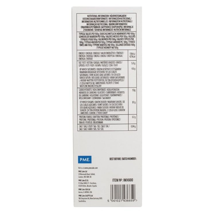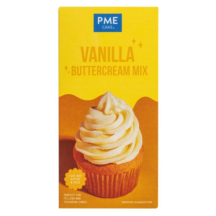 Vanille-Buttercreme-Mischung 450 g von PME ist eine fertige Mischung, mit der Sie ganz einfach und schnell eine feine, luftige Buttercreme mit einem angenehmen Vanillegeschmack herstellen. Die Verpackung enthält 450 g Mischung – einfach Wasser hinzufügen, schlagen und fertig. Die Creme eignet sich zum Bestreichen von Kuchen, Füllen von Desserts oder zum Dekorieren von Cupcakes.