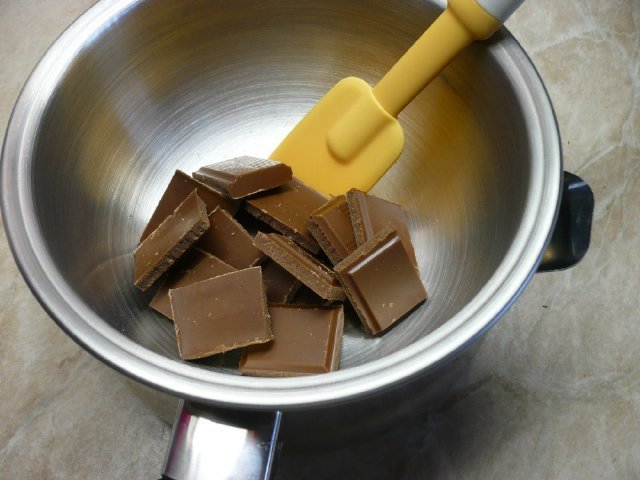 Ich arbeite oft mit Schokolade und dieser Topf ist beim Schmelzen absolut unverzichtbar. Er wird von all jenen verwendet, die zu Hause zum Beispiel Pralinen, Tafelschokolade oder verschiedene Dekorationen für Kuchen und andere Desserts herstellen. Natürlich eignet sie sich auch für die Zubereitung von verschiedenen Toppings. Beim Schmelzen der Schokolade gieße ich 2 dl Wasser in die Doppelwand des Topfes. Die Zubereitung geht sehr schnell, der Topf hat keinen dicken Boden, so dass sich der Inhalt recht schnell erhitzt. Wenn der Inhalt abgekühlt werden muss, wenn sich weniger Zutaten in der inneren Schüssel befinden, kann der Topf gekippt und das Wasser abgegossen werden. Umgekehrt kann man kaltes Wasser nachgießen. Ich verwende dafür einen kleineren Wasserkocher. Ich sehe diese Temperaturregelung als großen Vorteil. Es besteht keine Verbrühungsgefahr beim Hantieren und auch nicht die Gefahr, dass ein Tropfen oder mehr Wasser in die Schokolade gerät, wie es bei klassischer Arbeit durchaus vorkommt.