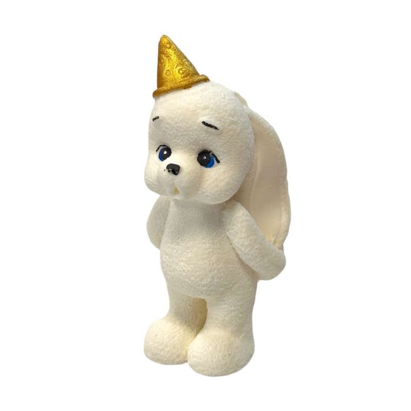 Weiße Schokoladenhase steht aufrecht. Höhe 9 cm.