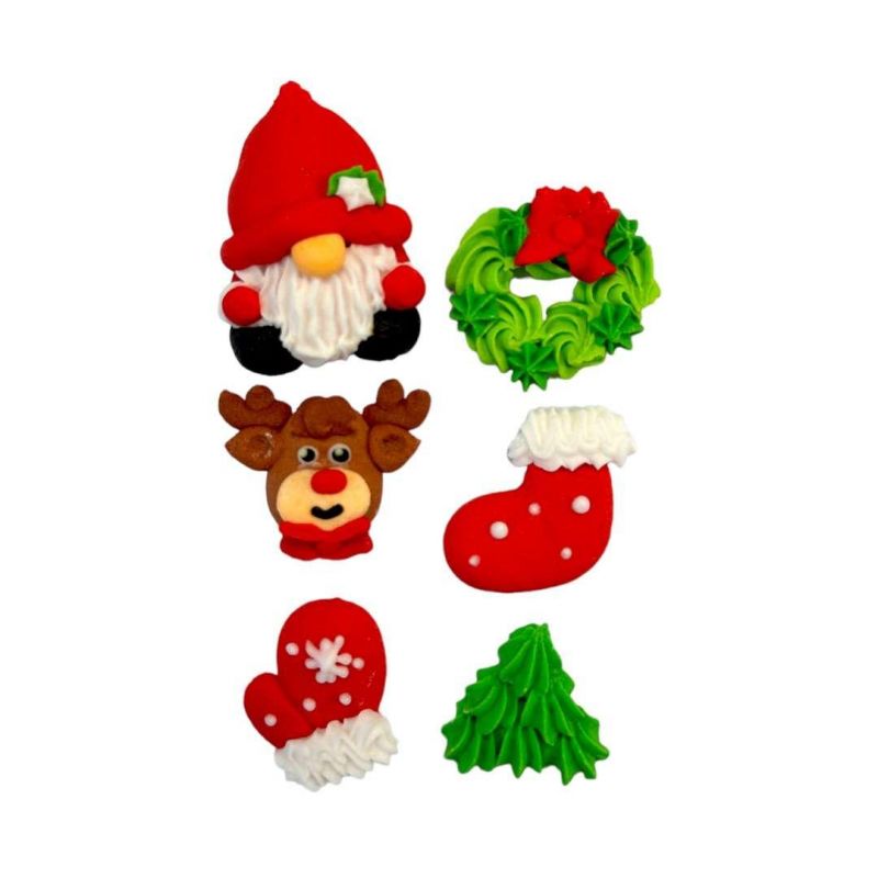 Eine Mischung aus Zuckerstücken mit weihnachtlichen Motiven ist ideal zum Dekorieren von kleinen und mittelgroßen Kuchen sowie weiteren interessanten Konditoreiprodukten für jedes Kind. Jedes Stück ist bereit für die direkte Anwendung auf den Kuchen, ohne weitere Bearbeitung.