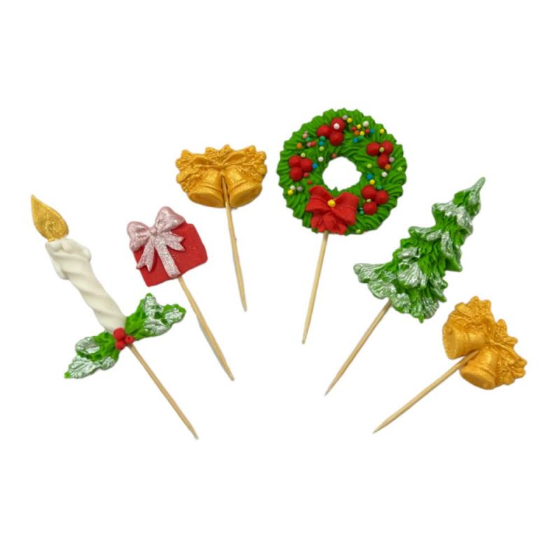 Dekorierte Tortendekorationen mit weihnachtlichem Motiv sind eine perfekte Art, eine Torte zu Geburtstagen, Hochzeiten, Taufen, Empfängen oder anderen Festen zu schmücken. Sie können verschiedene Motive zeigen, wie Märchenfiguren, Blumen, Symbole, Beschriftungen. Tortendekorationen in Form von Weihnachtsdekorationen eignen sich für die unterschiedlichsten Anlässe und Partys. Dank des Topper wird die Torte eindrucksvoller und erhält eine individuelle Note.