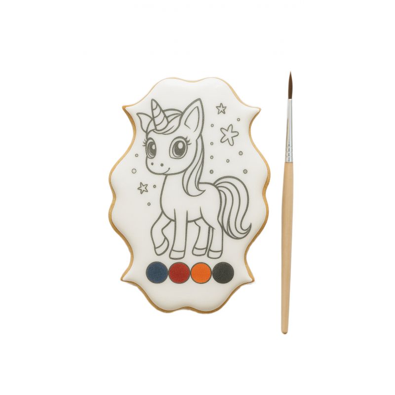 Leuchtet die kindliche Fantasie und den Geschmackssinn zugleich an! Dieser duftende Lebkuchen in der Form eines eleganten Einhorns ist mit weißem Zuckerguss überzogen und bereit zum Ausmalen mit essbaren Lebensmittelfarben. Zum Set gehört auch ein Pinsel, so reicht schon etwas Wasser und das magische Malen kann beginnen. Warum wählen Sie das Lebkuchen-Malbuch Unicorn? - wunderschönes und beliebtes Einhorn-Motiv - Spaß und süße Belohnung in einem - ideales Geschenk für Kinder, kreative Aktivität für Feier und zuhause - praktisches Set mit Pinsel Lebkuchen-Malbuch Unicorn 55 g ist eine originelle Kleinigkeit, die Freude am Malen mit süßem Naschen verbindet. Perfekt als kleine Aufmerksamkeit, Freude-Geschenk oder kreative Aktivität, die Kinder jederzeit und überall beschäftigt.
