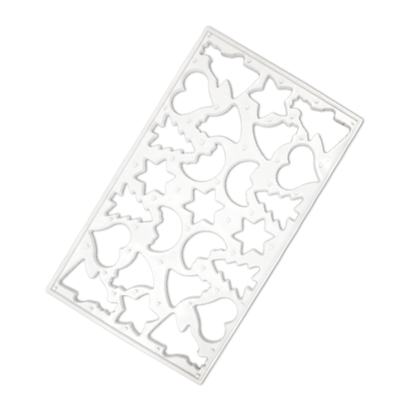 Die Form enthält eine Vielzahl von Weihnachtsmotiven von Sternen bis zu Bäumen. Die Kunststoff-Ausstechformen eignen sich nicht nur für Lebkuchen und Weihnachtsplätzchen, sondern auch für Kekse oder Marzipan.