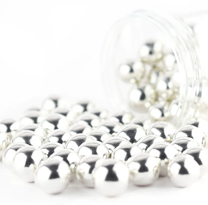 XL silberne Knusperkugeln. Packung 130 g.