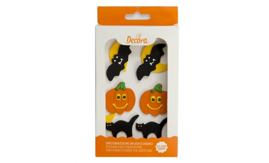Zucker Kuchen Dekoration Kürbis, Fledermaus und Katze 6pcs