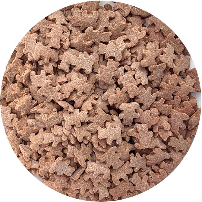 weißer Zucker, Weizen Mehl, Maissirup, raffiniert Palmöl, modifizierte Stärke, Verdickungsmittel: E412, E415, E466, E414; Glänzmittel Kapol (Lack, pflanzliches Öl), Talkum, Lebensmittelfarbe: E155.