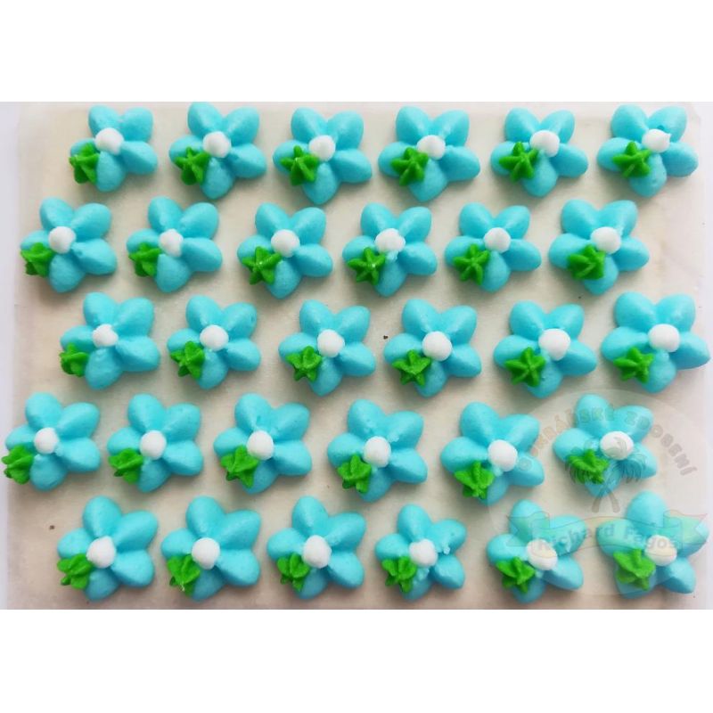 Zuckerblüten blau mit weißem Zentrum auf Plättchen 30 Stück
