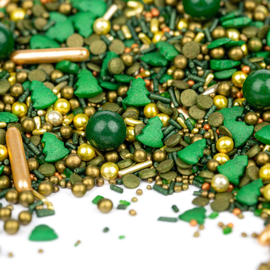 Wir empfehlen diese grüne Farbexplosion, um Desserts einen attraktiven, ja sogar auffälligen Look zu verleihen. Dekorieren Sie zum Beispiel eine Torte in knalligen Farben. Die dichten runden, goldenen und roten Perlen und die mittelgroßen weißen Kugeln in der Mischung sind mit knuspriger, köstlicher Schokolade gefüllt. Schön weich und zum Verzehr bereit. Keine harten Zuckerstückchen. Um Ihre Lieblingsstreusel zu genießen, geben Sie den Inhalt der Packung in eine größere Schüssel oder ein Glas und rühren Sie um.