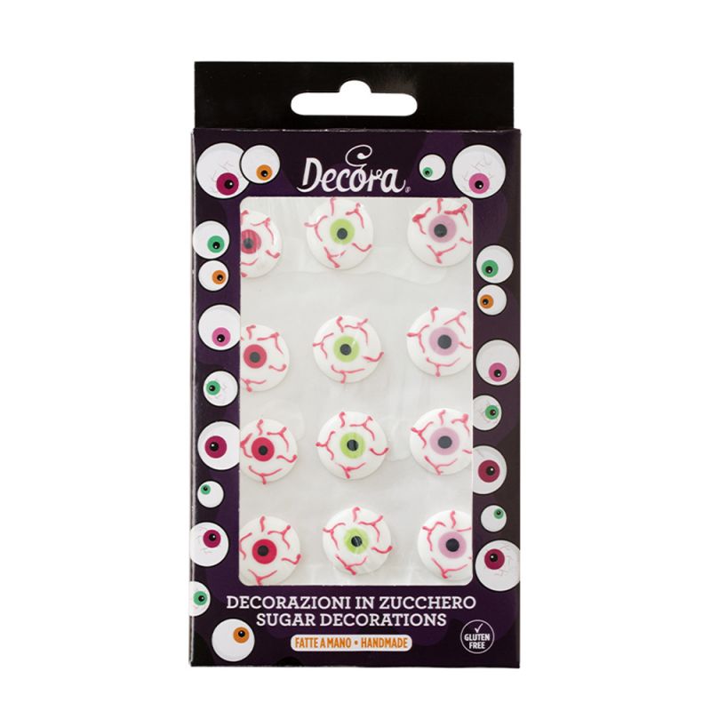 Zuckerdekoration für Halloween-Augen. Packung mit 12 Stück.