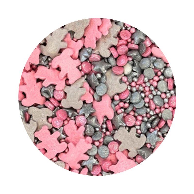 Zuckerdekoration rosa und silberne Teddybären 1kg