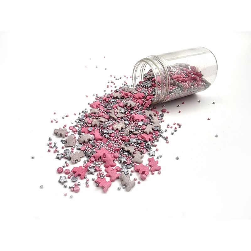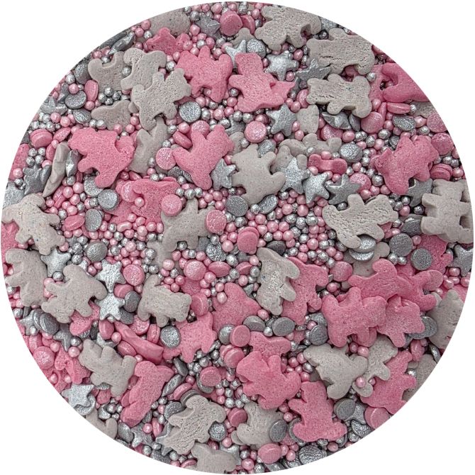 Zuckerdekoration Rosa und silberne Teddys 80g
