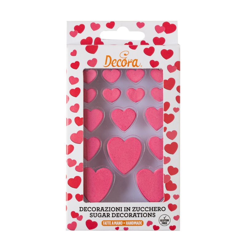 Rote Herz-Zuckerdekoration von Decora. 16 Stück.