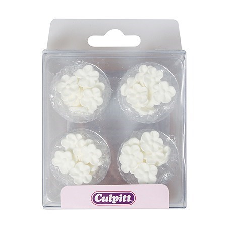 Diese wunderschönen weißen Mini-Blumen werden einzeln von Hand aus Zuckerpaste hergestellt und mit Royal Icing überzogen. Sie eignen sich hervorragend als Tortendekoration oder zum Verzieren einer großen Torte.