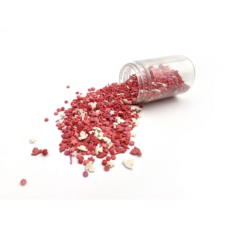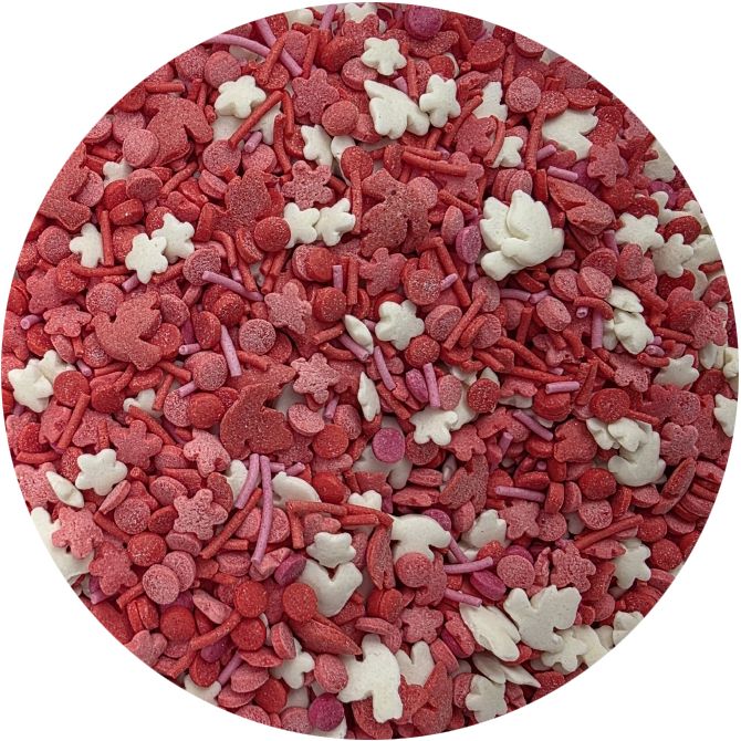 weißer Zucker, hochwertiges Weizenmehl, Stärkersirup, raffiniertes Palmöl, modifizierte Stärke, Verdickungsmittel: E412, E415, E466, E414; Glanzmittel Kapol (Schleime, pflanzliches Öl), Talkum, Lebensmittelfarbstoffe: E122, E110, E124.