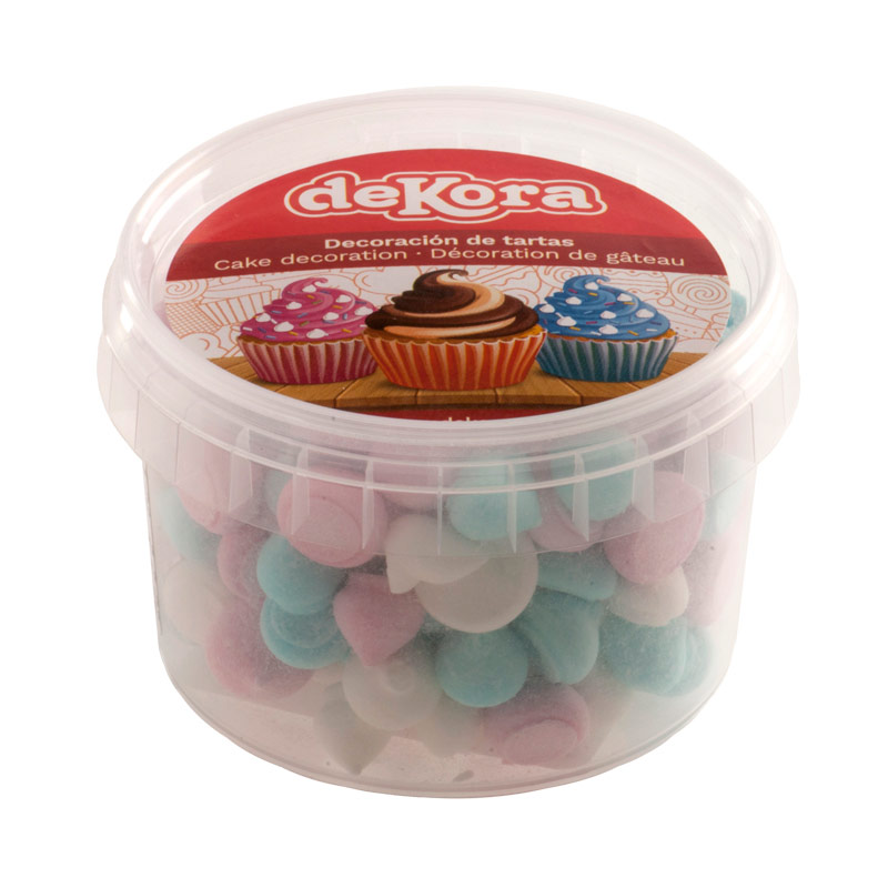 Zuckerdekoration zum Verzieren von Torten, Cupcakes und anderen Desserts in Form von kleinen Baisers. Diese Baisers werden in einer Packung mit drei Farben geliefert, so dass Sie beliebige ein- oder mehrfarbige Kombinationen für Ihre Torte wählen können. 119 g pro Packung.