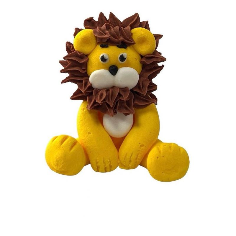 Zuckerfigur in der Form eines gelben sitzenden Löwen, ideal zum Dekorieren von kleinen und mittelgroßen Kuchen und anderen interessanten Backwaren für jedes Kind. Der Löwe ist direkt auf den Kuchen anwendbar, ohne weitere Nachbearbeitung.