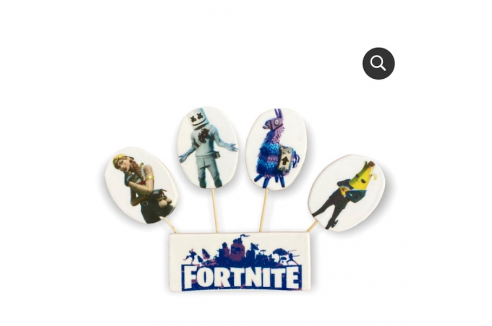 Zuckerkuchendekoration mit Fortnite-Spielen. Geeignet für alle Arten von Kuchen, inklusive Spieße, um die Dekoration einfach in den Kuchen zu stecken. Enthält das gesamte Set wie abgebildet.